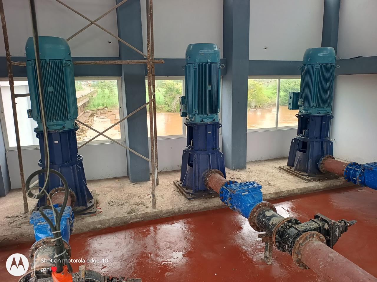Hukkeri Tank filling project fills 19 tanks in Hukkeri taluk by lifting water from Ghataprabha river The project will utilize 35.75Mcft. The area is dotted with numerous tanks but has not filled their capacity over the recent years due to scanty rainfall. The discharge requirement would be around 0.213cumec (18.4MLD) with a pumping head of 181m. Three 330hp pumps (2W+1S) are being installed.