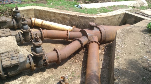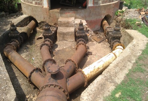 Non-destructive testing was recommended to assess structural health. Mechanical and electrical components need replacement, including pumps which have been inoperable for years; motor replacement is proposed after evaluation. A single MS rising main will feed one delivery chamber.