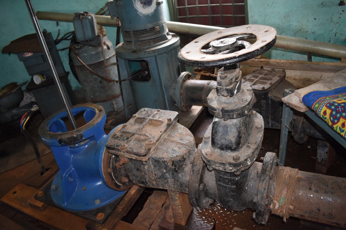 Non-destructive testing was recommended to assess structural health. Mechanical and electrical components need replacement, including pumps which have been inoperable for years; motor replacement is proposed after evaluation. A single MS rising main will feed one delivery chamber.